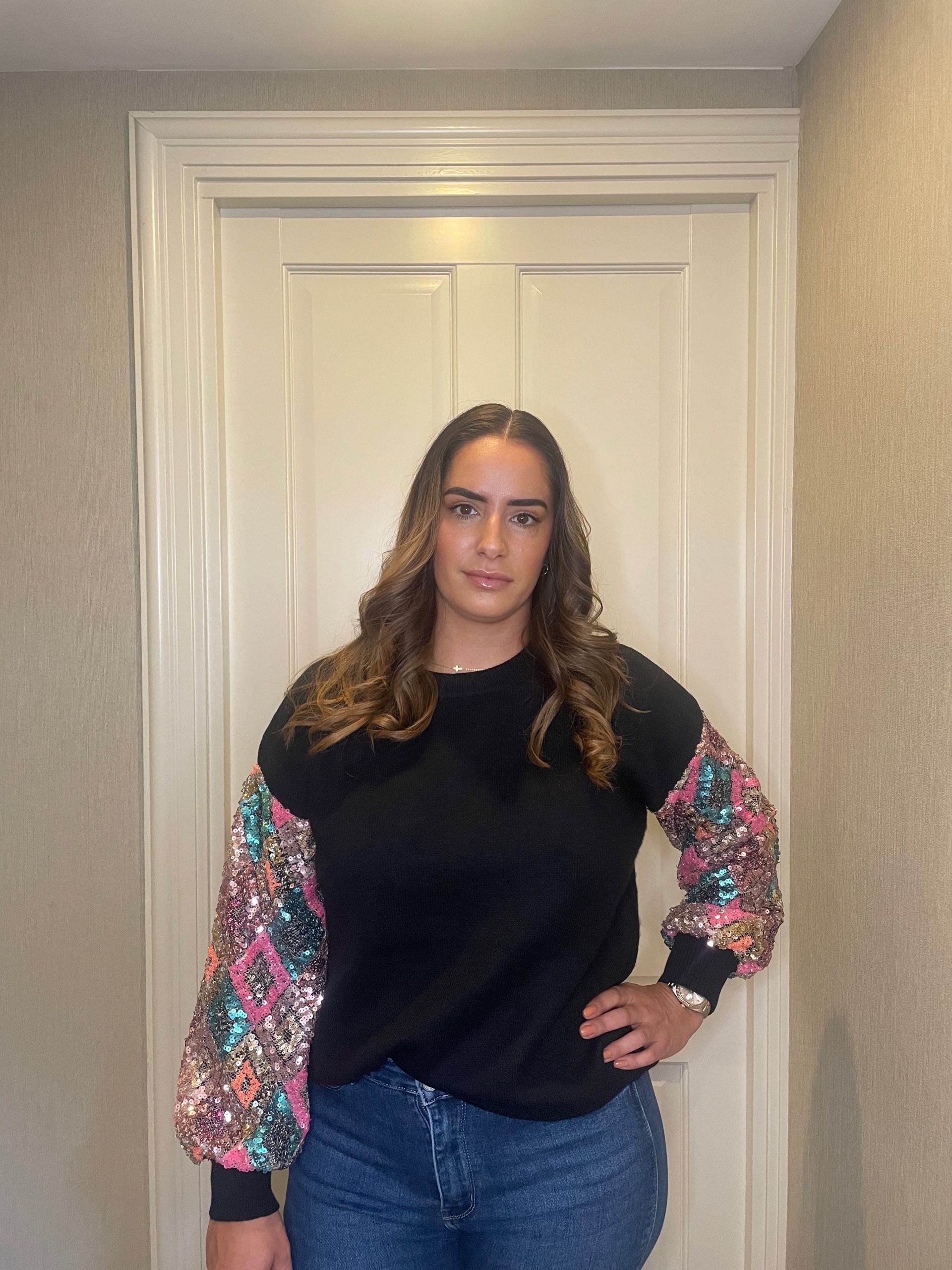 Sweater black glitter mouw